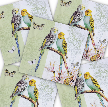 Decoupage Napkin - Budgies (Green) - (DN-8072) - Set of 5