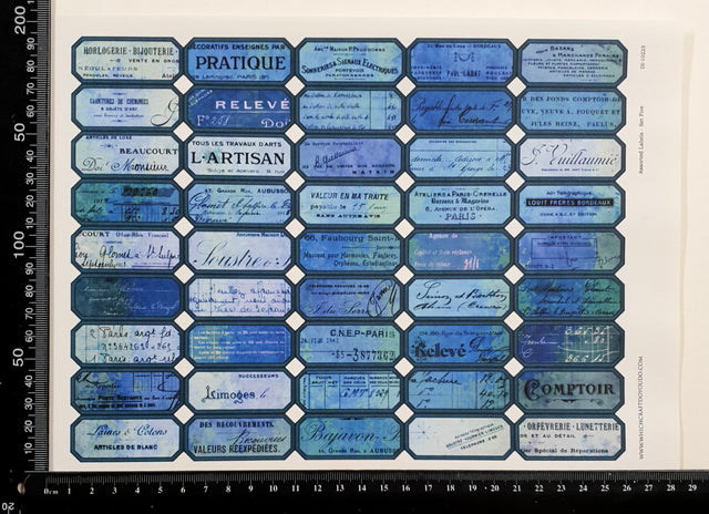 Sheets of labels printed on sticker paper ready to be cut apart and used on your projects.