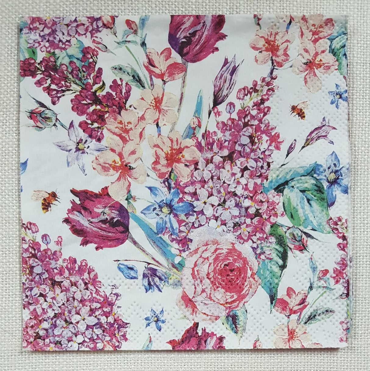 - Decoupage cocktail napkin measures approximately 25cm x 25cm when unfolded.