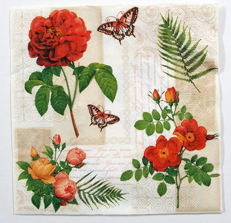 Very low stock (4 units)$0.75Unit price /UnavailableDecoupage Napkin - (DN-8758) - Flowers and Butterflies on Vintage Background