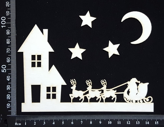 Santa's Sleigh Border - C - White Chipboard