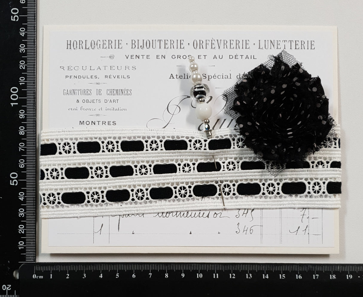 This listing is for 1 Inspiration pack containing 1 meter of lace wrapped on card as seen in pictures and a decorative pin.