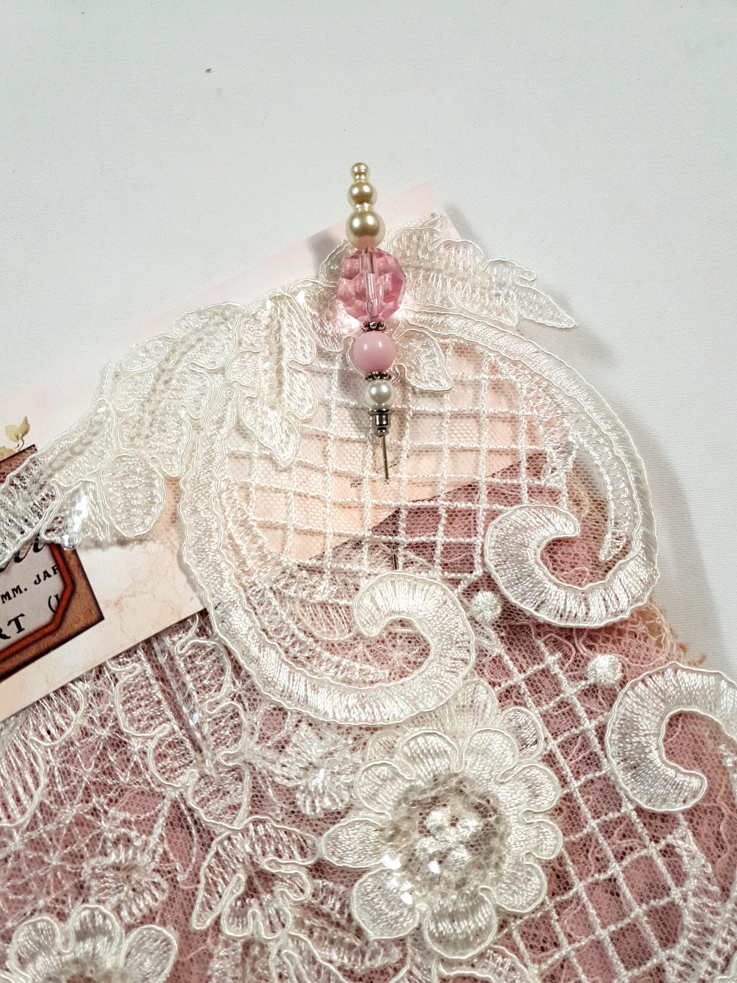 Pack includes 4 large pieces of lace, 1 applique & Decorative Pin.