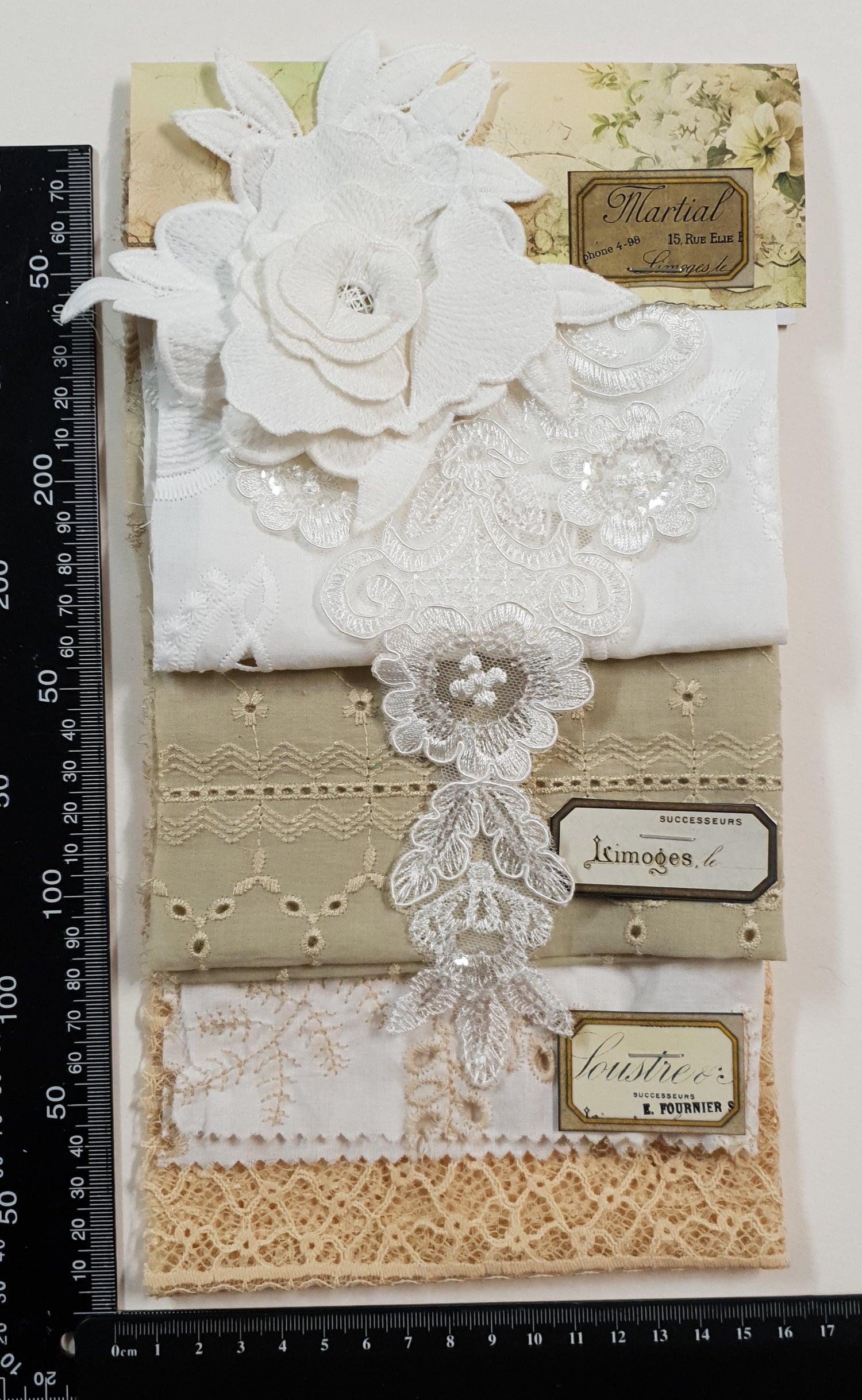 Pack includes 4 pieces of lace, 2 appliques