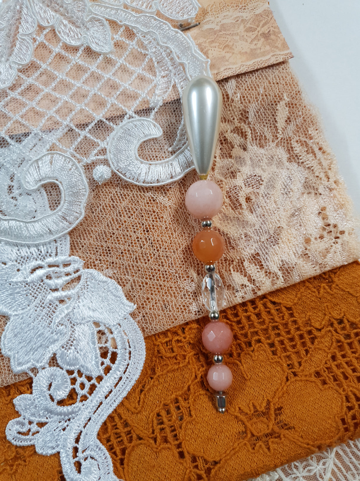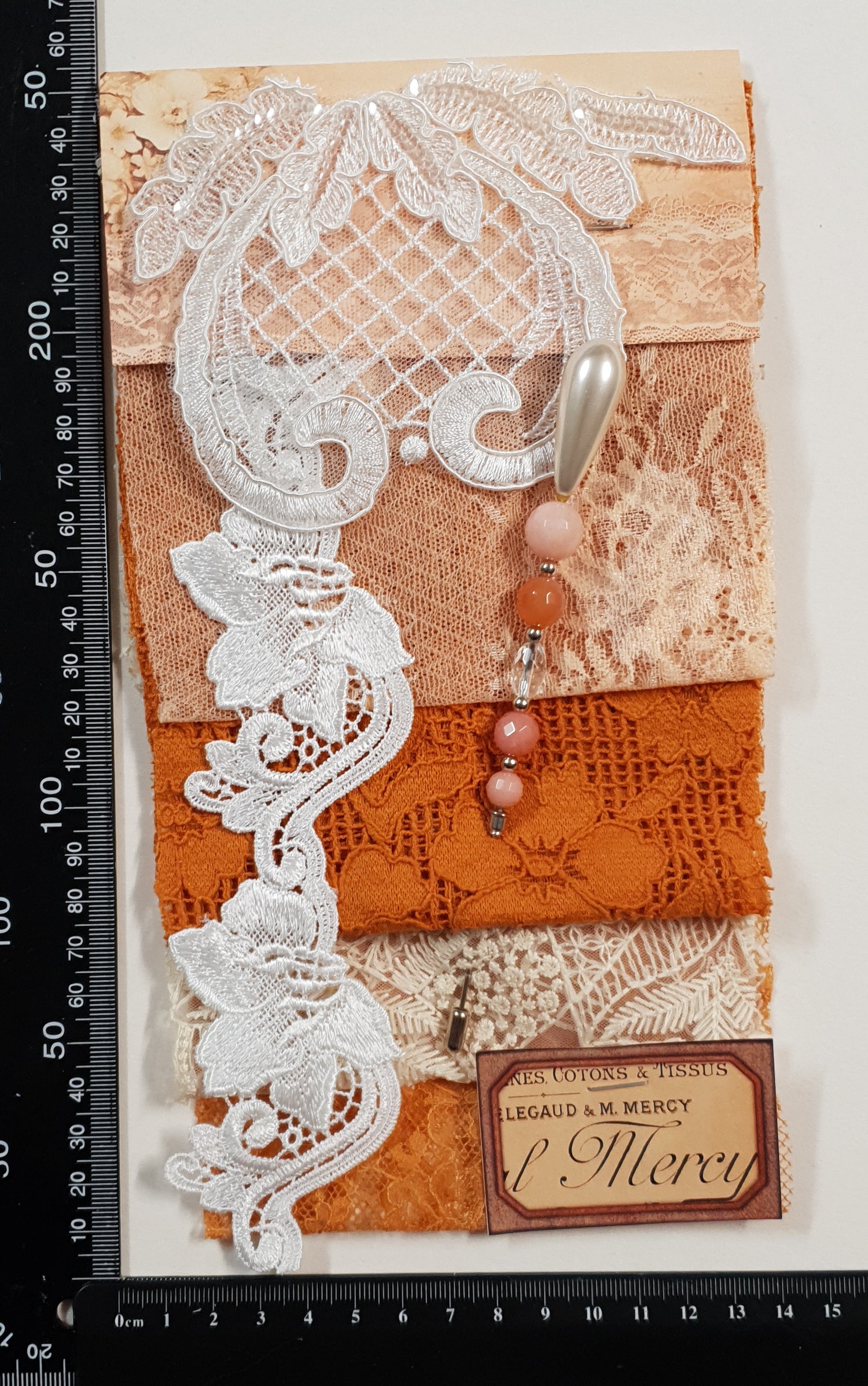 Pack includes 4 pieces of lace, 1 applique & 1 decorative pin.