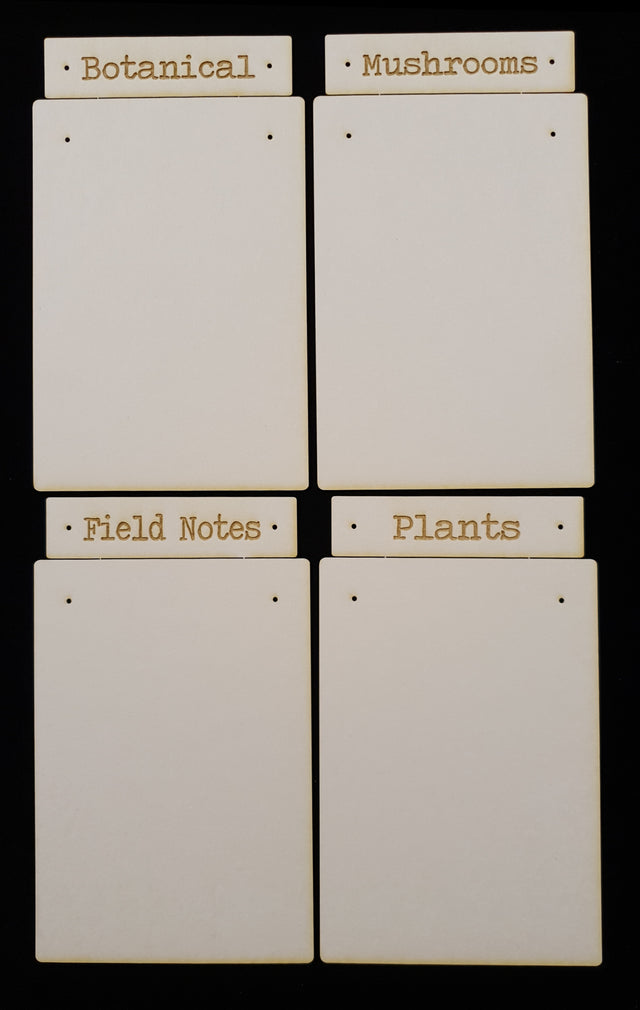 Laser cut from white chipboard that is approximately 1mm thick.