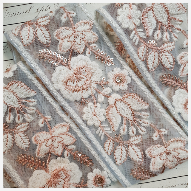 This listing is for 1 meter of embroidered trim. Please use the quantity selector to adjust how many meters you would like.